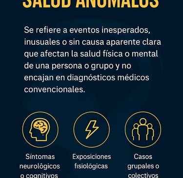 SE ENTIENDE POR "INCIDENTES DE SALUD ANÓMALOS" (ISA) A AQUELLOS EVENTOS QUE AFECTAN LA INTEGRIDAD FÍSICA, NEUROLÓGICA O PSICOEMOCIONAL DE UNA O MÁS PERSONAS, DE FORMA REPENTINA, PERSISTENTE O RECURRENTE, SIN CAUSA MÉDICA, AMBIENTAL O TECNOLÓGICA CLARAMENTE IDENTIFICABLE, Y QUE PRESENTAN PATRONES ATÍPICOS EN CUANTO A: